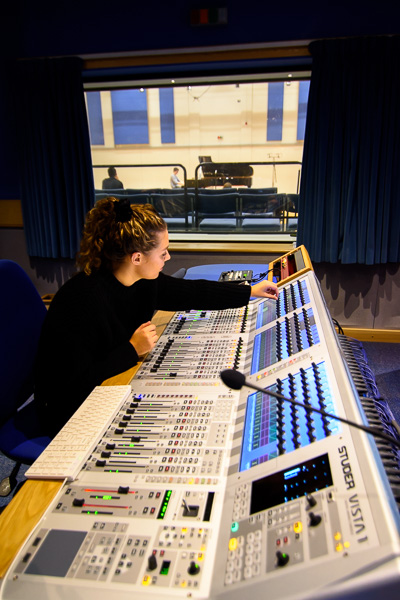 Studio 1 is also used for department concerts, including the Wednesday lunchtime concert series, all of which are recorded by Tonmeister students. These are valuable training opportunities for students: they are mixed direct to stereo and require a professional result in difficult circumstances. These recordings are also useful to students studying performance so that they can listen back to the recordings later and reflect on areas for improvement.